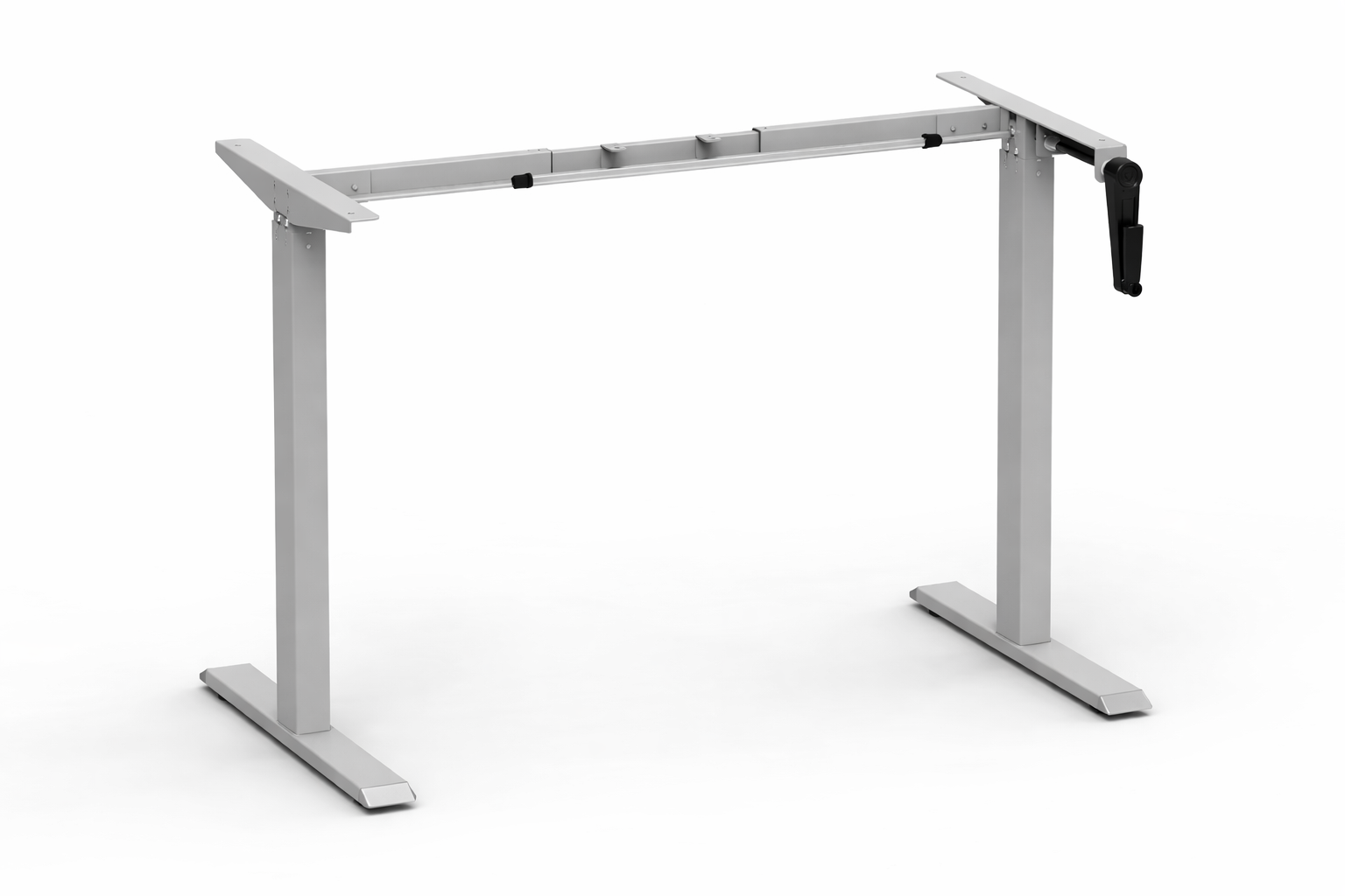 The Crano Minus (CRD02-) is our newest addition to the series, designed specifically for users who need a full adult sit-stand height range but are working with limited floor space. By swapping the standard Crano feet and crossbars for the Junior series components, we have created a frame that supports tops as narrow as 900 mm while still reaching a maximum height of 1150 mm. Both Crano Junior and Crano minus models features a smooth 16mm/turn folding handle and 75×40 mm column (leg) size and include levelling footpads, upgradable to wheels. It’s available in both Black and Silver.