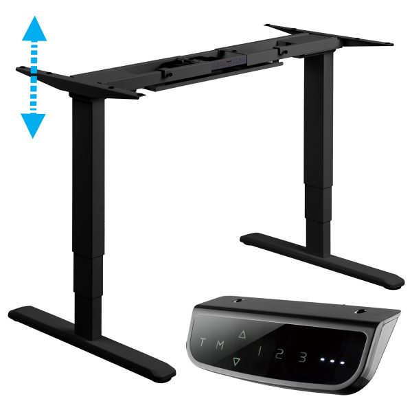 The sleek, modern touch-sensitive controller sets the Ergo Dual Motor apart, offering a user-friendly interface with advanced customization options. Save up to three height pre-sets, set a sit-stand alert timer, and adjust the anti-collision sensitivity, all at your fingertips. Its gyro sensor ensures precise anti-collision protection, keeping you safe while moving between positions.