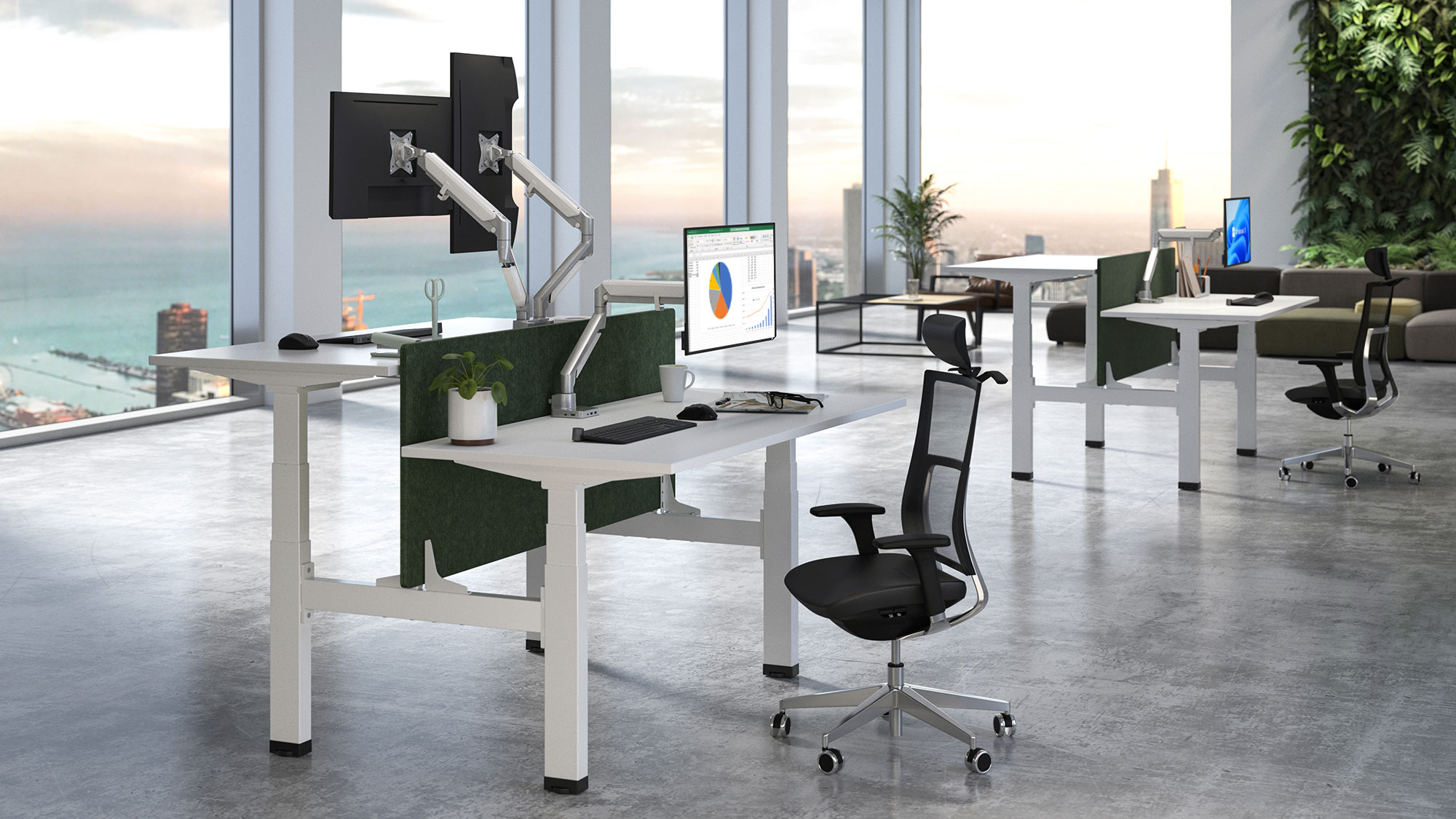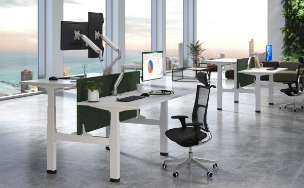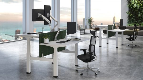 The Emantis Ergo Quad Motor desks are designed to transform open-plan office environments, offering a sleek and functional workspace solution that promotes both collaboration and individual productivity. Perfect for two colleagues working face-to-face, these desks provide a professional yet flexible setup that enhances teamwork while maintaining privacy. For added focus, we recommend using a 90cm privacy panel. The Ergo Quad Motor desks can also be joined together to form extended islands of workstations, creating a streamlined, modern office layout that accommodates multiple users while maintaining a cohesive aesthetic.